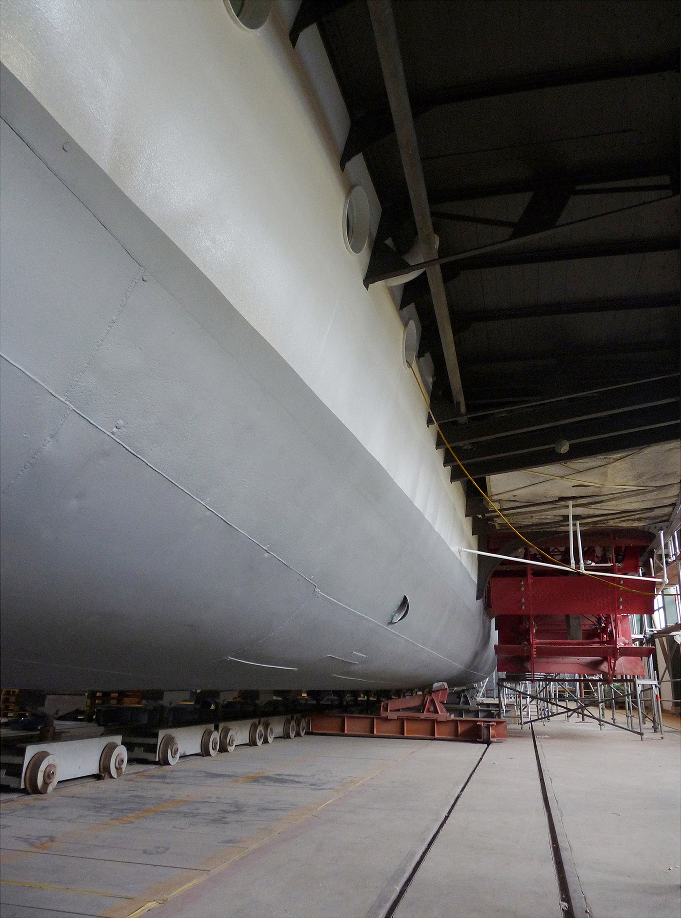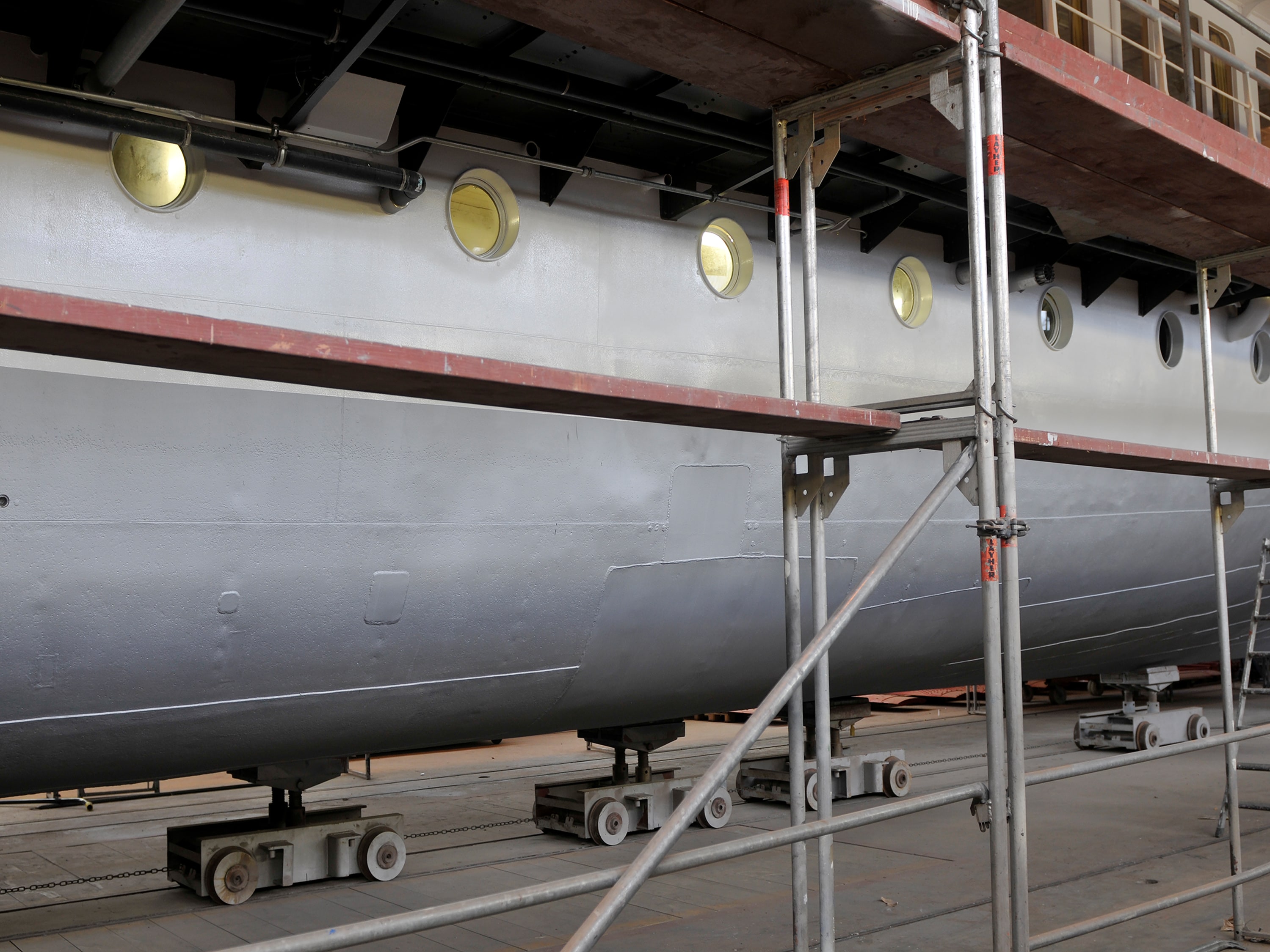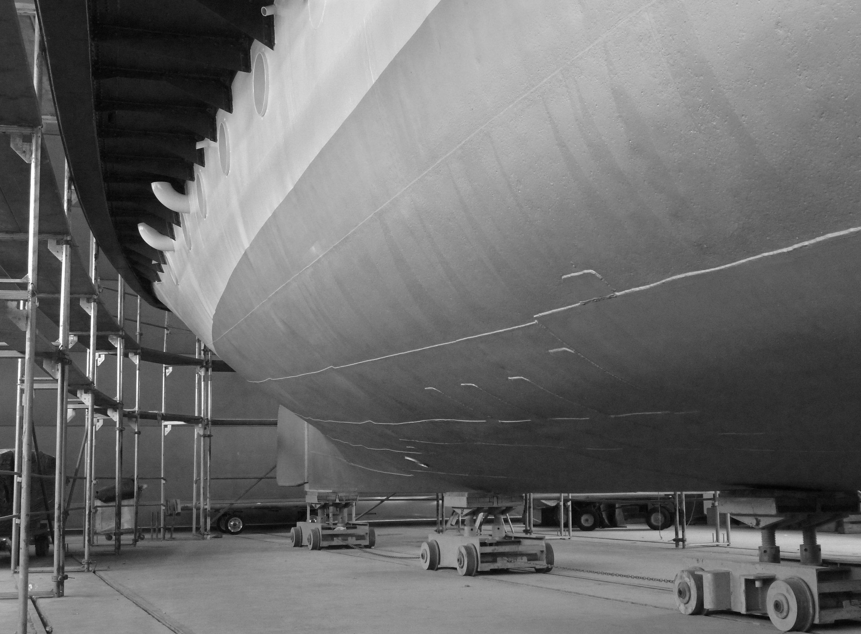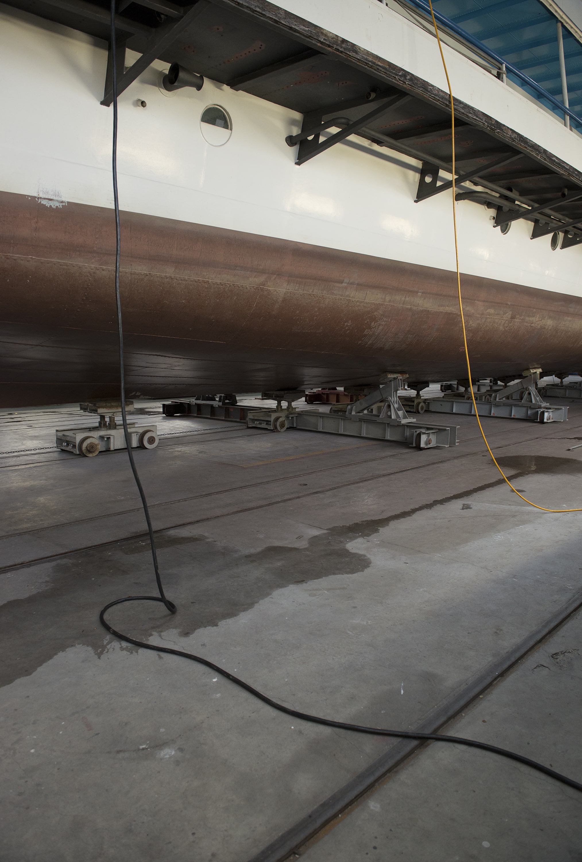 Jeden Winter befinden sich Schiffe im Trockendock der Zürichsee Schiffahrtsgesellschaft. Für einen beschränkten Zeitraum ist das Transportmittel aus seinen Funktionszusammenhängen herausgenommen und zwecks Reparaturen lahmgelegt. Es zeigt sich in einem Ausnahmezustand, der eine verschärfte Wahrnehmung zulässt. Zu sehen sind vor allem Ausschnitte der Unterseite des Dampfers, die sonst unsichtbar unter Wasser stehen. Der Schiffsrumpf wird monumental, wohingegen die unterstützenden Gefährte, Gerüste und andere Geräte sich spielzeughaft zeigen. Fast abstrakt wirkt der Schiffskörper und ruft Assoziationen zu Raumschiffen anderer Art hervor.