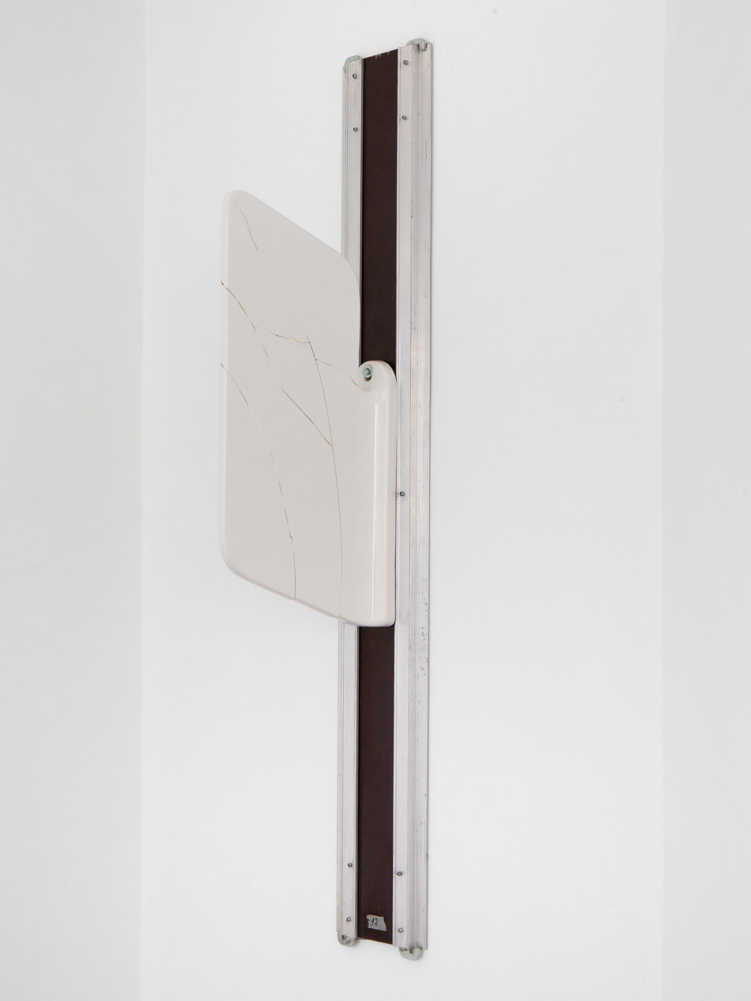 Eine keramische Urinal-Trennwand, um 180° gedreht und auf ein Gerüstelement montiert, ist ihrer ursprünglichen Funktion als Sichtschutz enthoben. Open Division wird selbst ein Instrument zum Sehen und Denken. Der zerbrochene Zustand hat die Trennfähigkeit aufgehoben, doch das Zusammenfügen erzeugt eine Ambivalenz, Trennung und ebenso deren Zusammenbruch sind präsent,