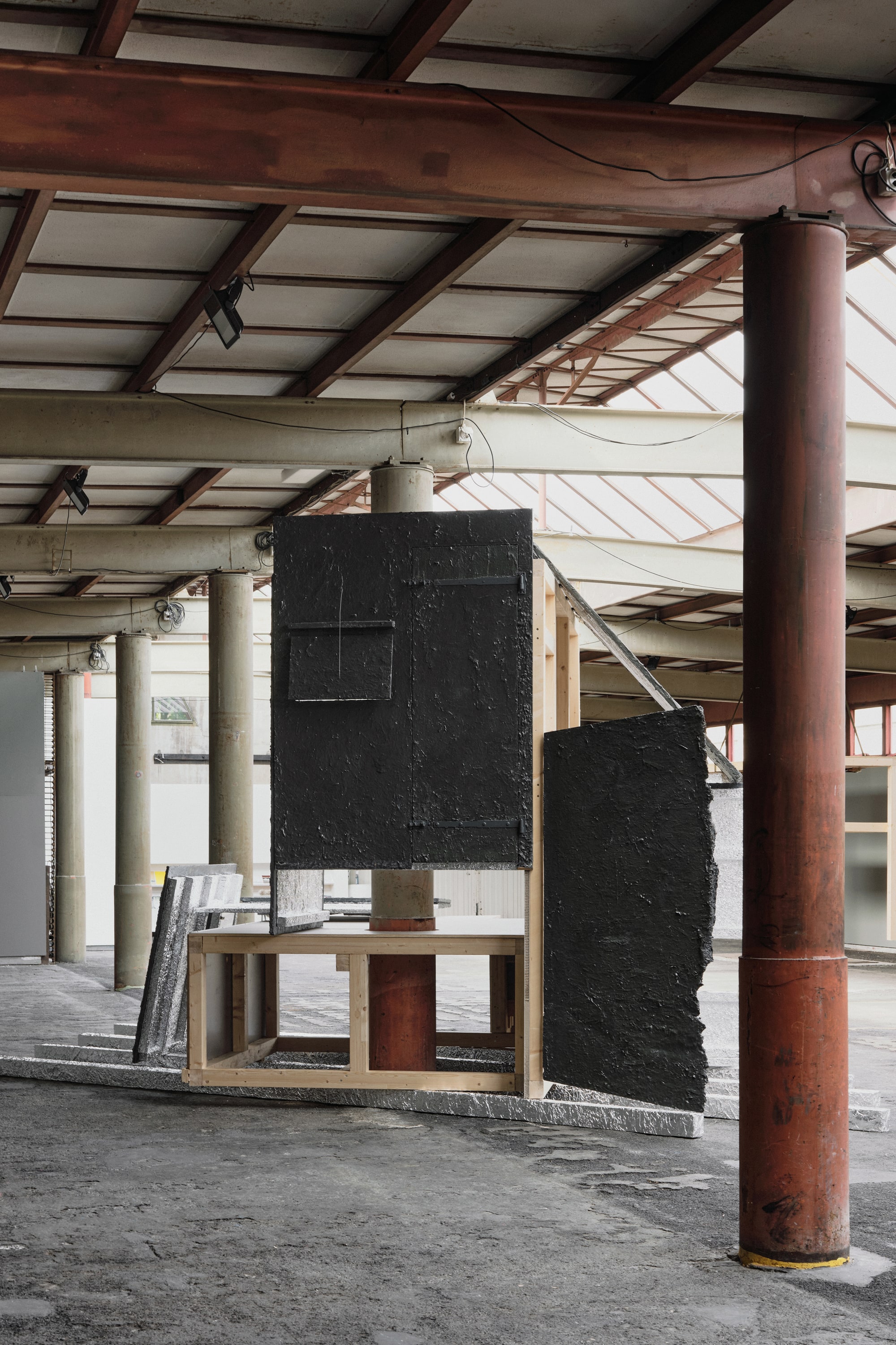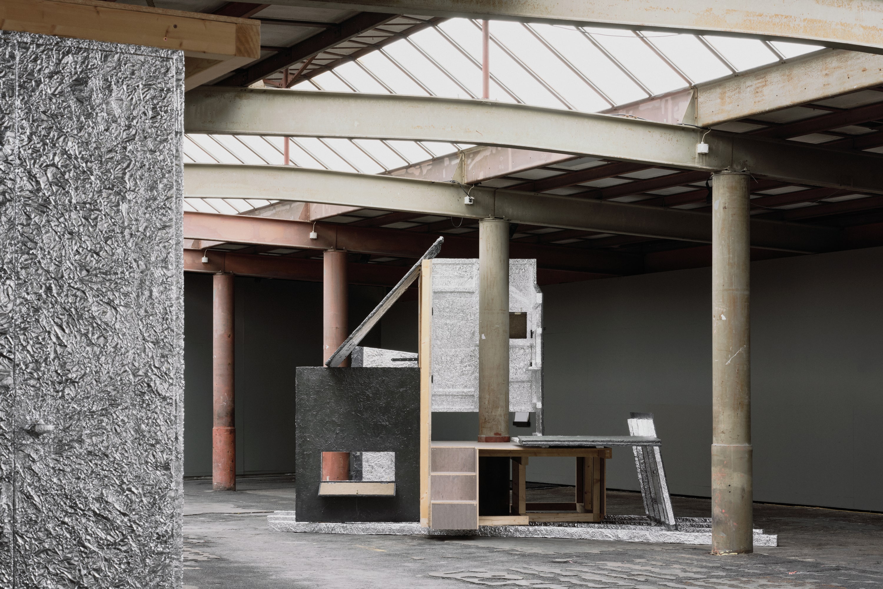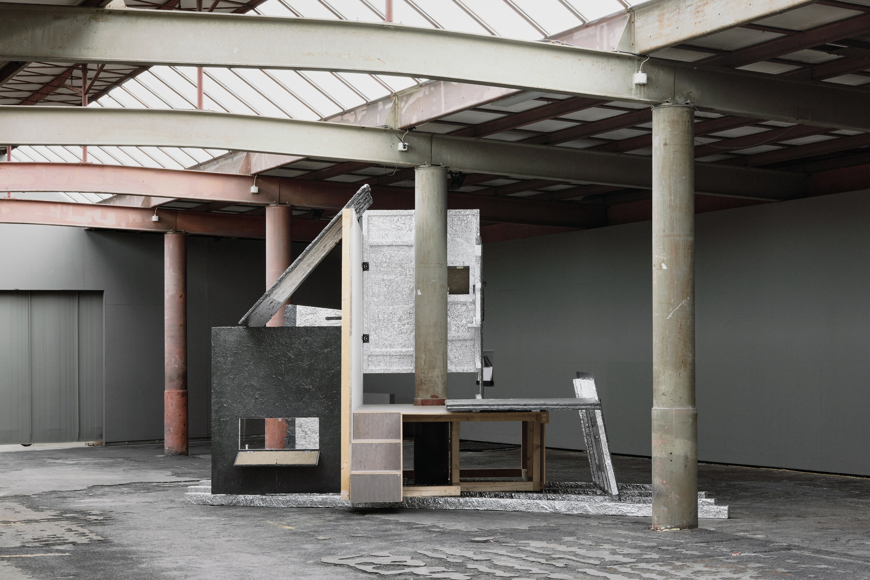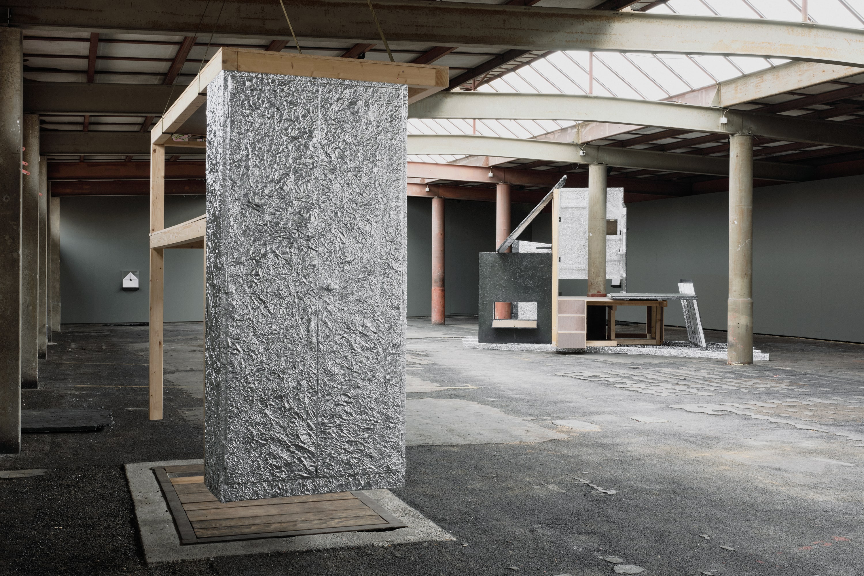 The exhibition fell within the period of my studio move from the Rote Fabrik and deals with spatial overlaps. Two elevated constructions are moved into the Kunsthalle: my elevated work platform with back wall from the studio and the loose parts of a hunting stand from a forest. The result is a hybrid construction of both, in which a column of the Kunsthalle is also being integrated. Questions arise about the conditions of showing, producing, interpreting, (mentally) transferring and (physically) migrating. The shifts reveal possibilities of seeing, thinking and feeling with one's own body what other people may experience, who have to leave places in pain and invent new places first. However, the starting point is my own living environment and field of thought, in order to think about these social questions in a plastic way with concrete material.
