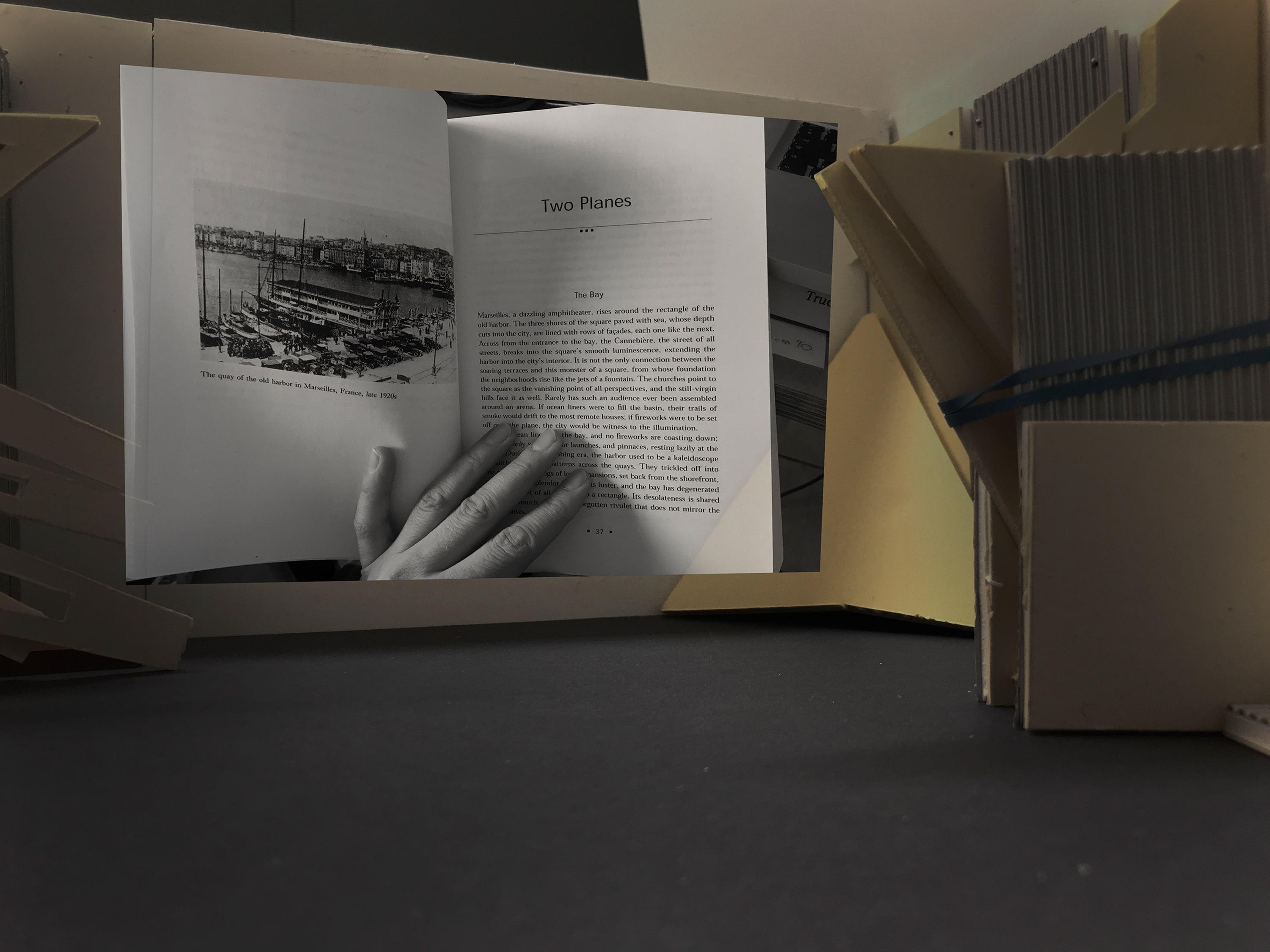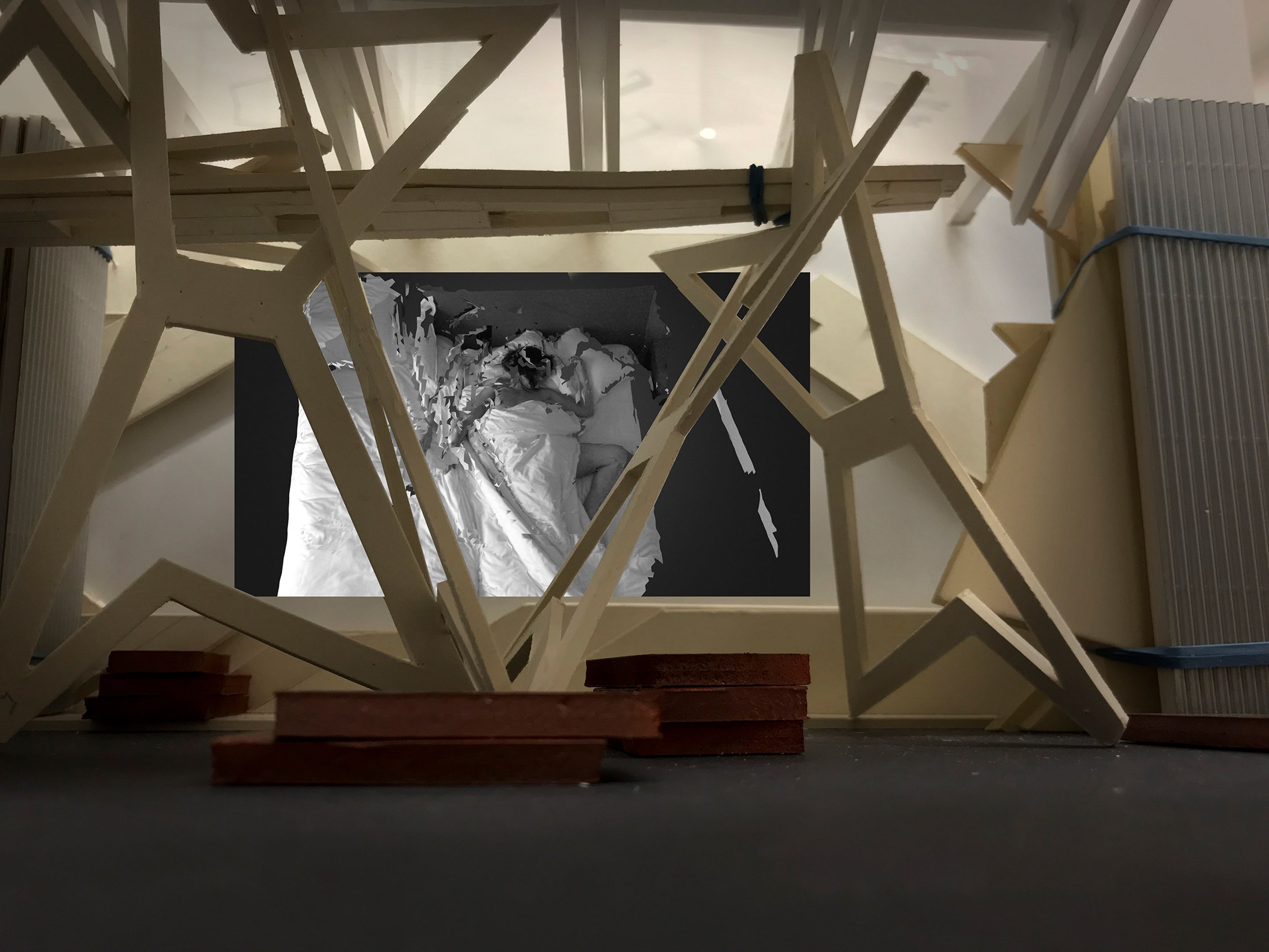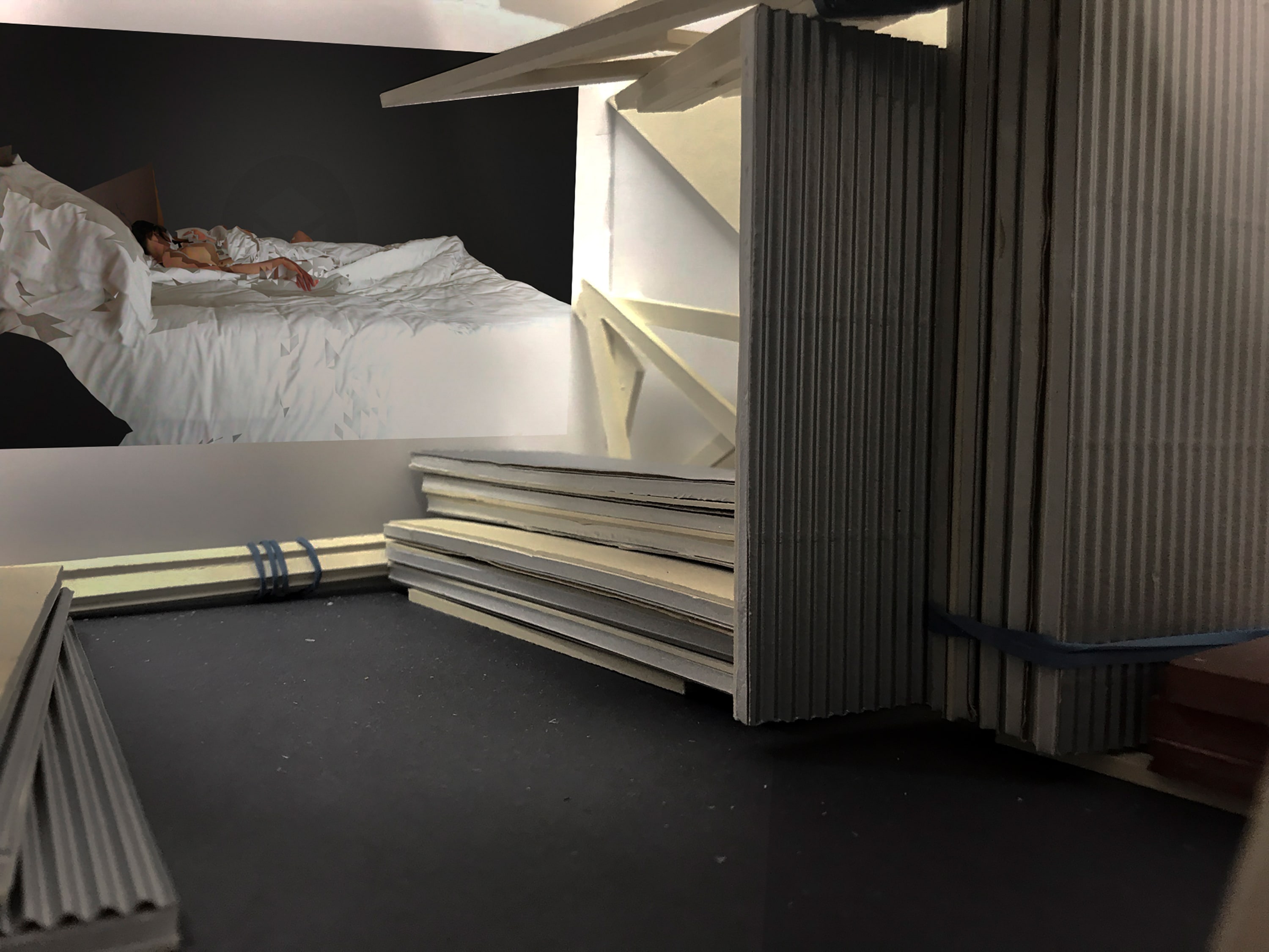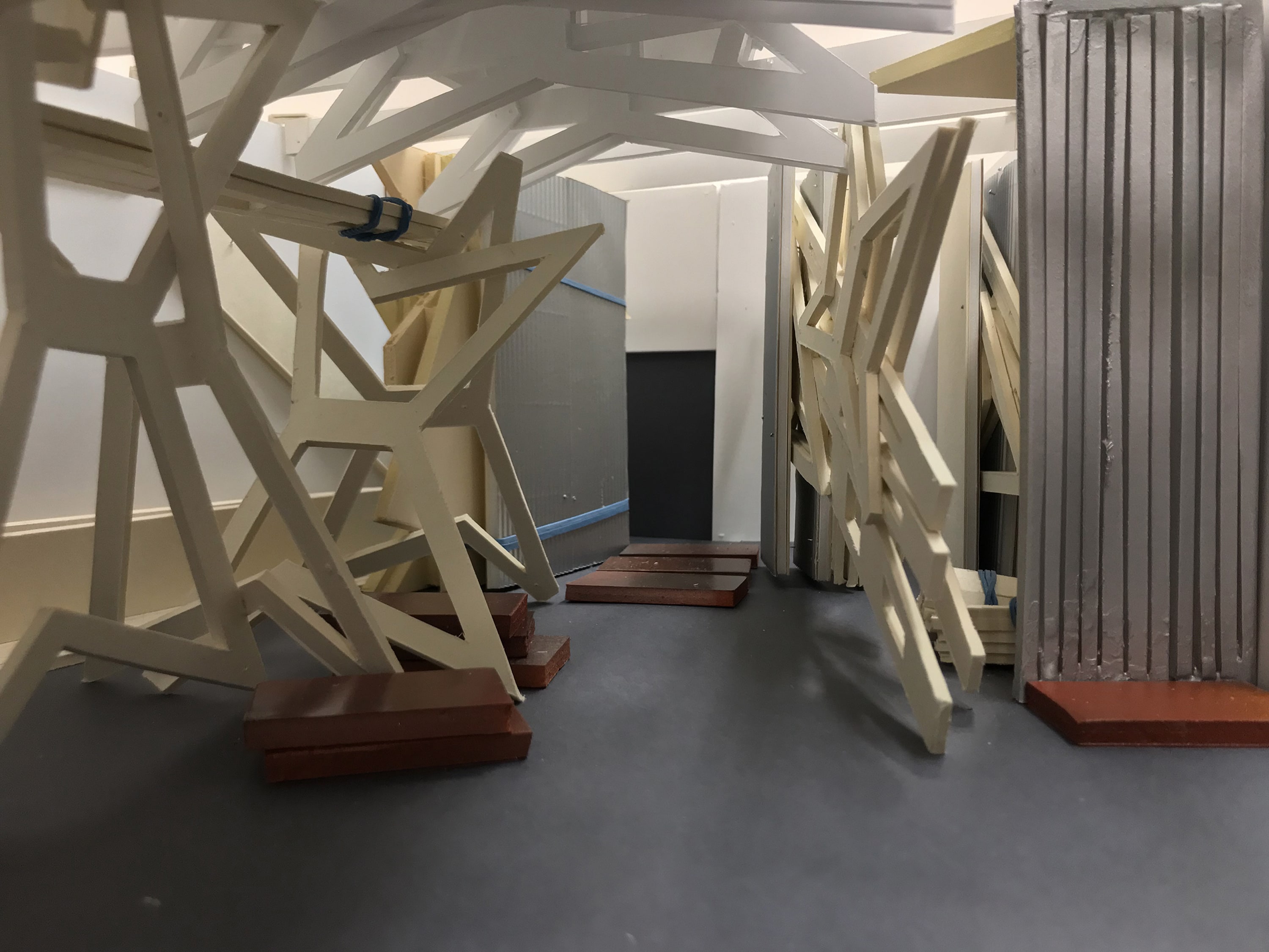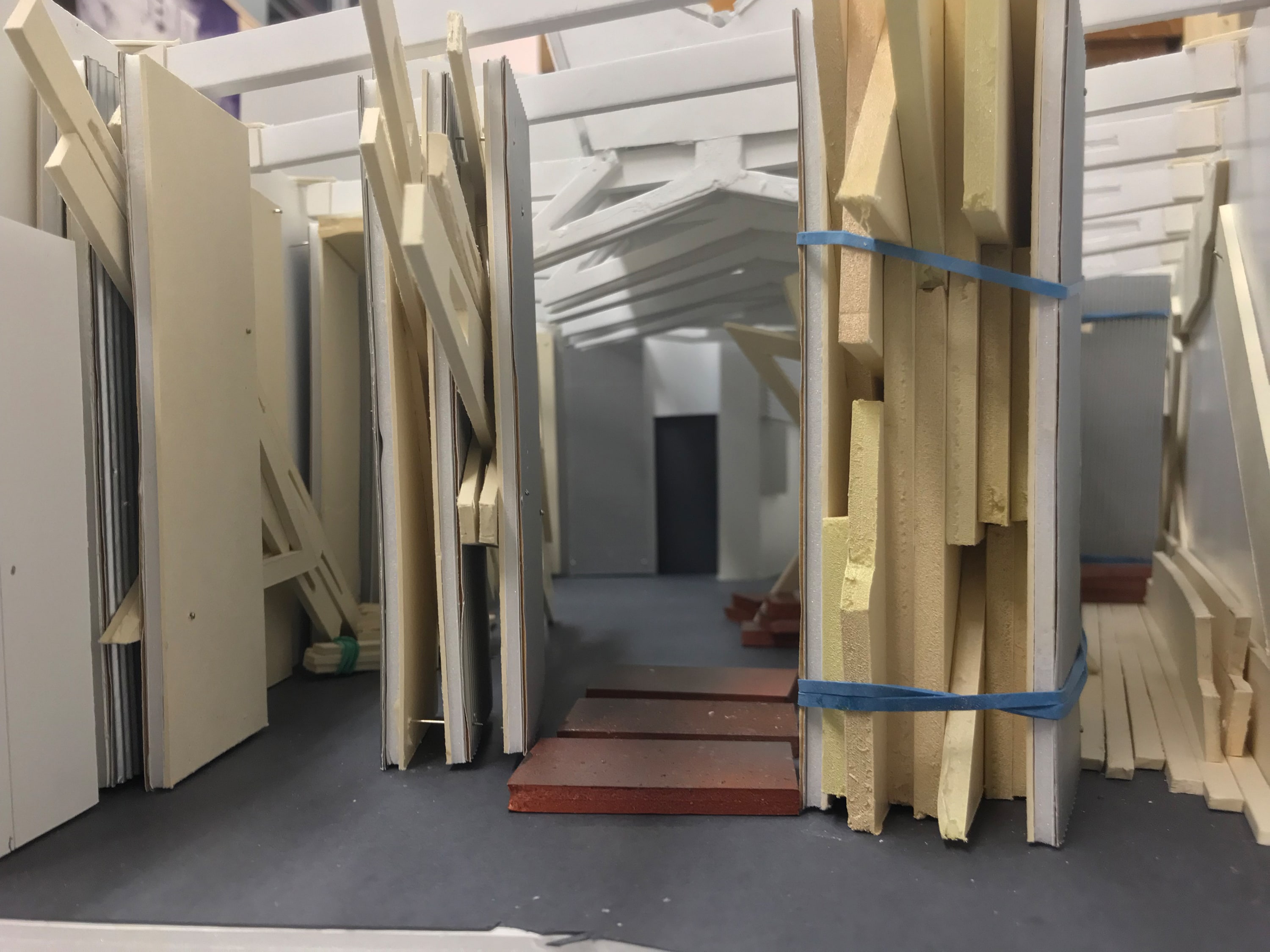 Modell-Installation STACCATO Bauteile im Innern, Tageslicht zwischen den Projektionen © Ilona Ruegg
