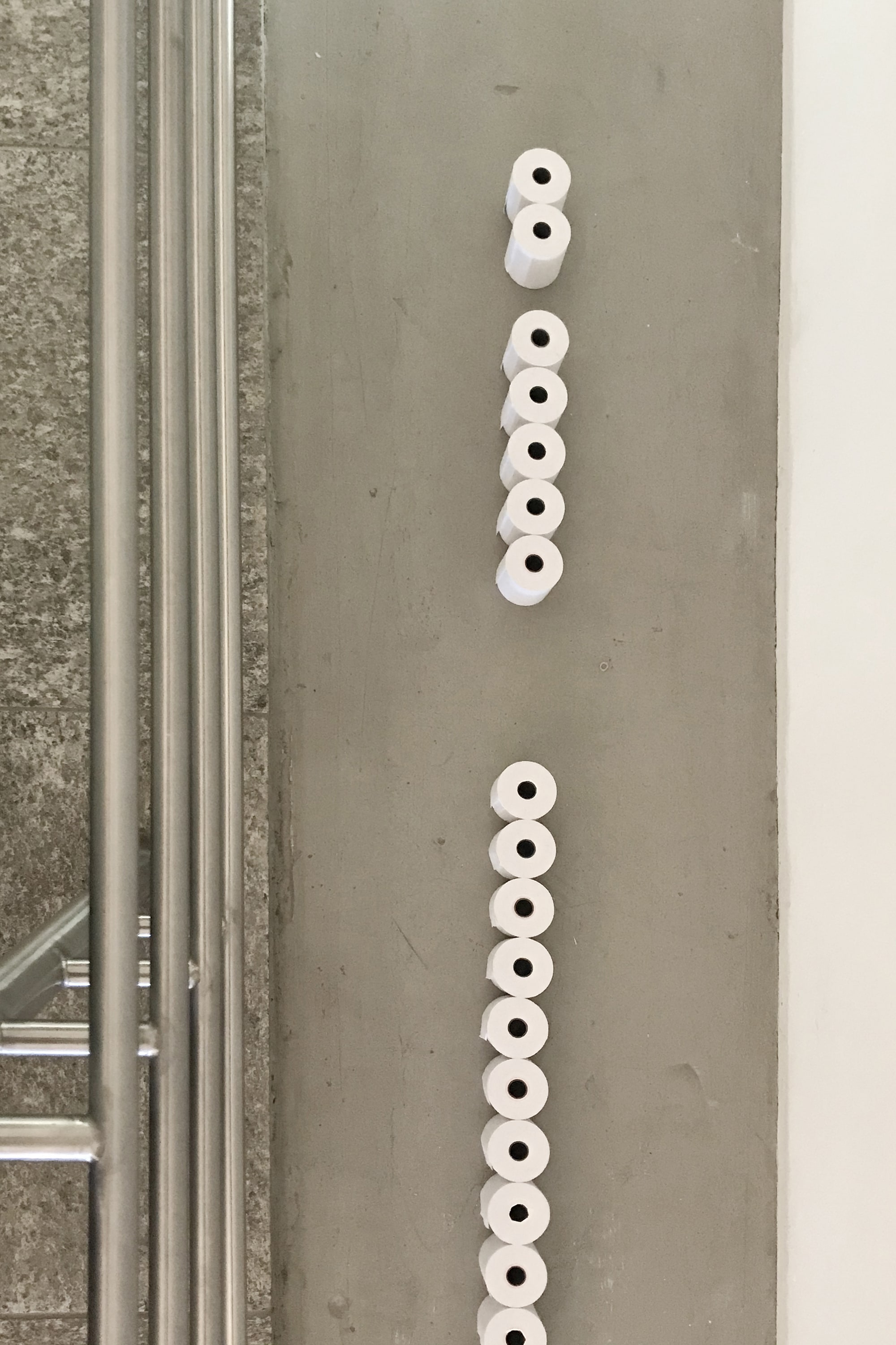 Identische Warenlaufbänder, Lifttüren, Gitterwände und diverse Kassenrollen © Sebastian Stadler